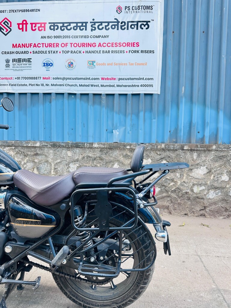 Enhance your Royal Enfield Meteor 350 with our premium Saddle Stay and Top Rack combo. Designed for both style and functionality, these accessories offer sturdy support and ample storage capacity. The Saddle Stay ensures secure mounting of your saddlebags, while the Top Rack provides additional space for carrying essentials. Crafted from durable materials and engineered for easy installation, they seamlessly integrate with your bike’s design, making them essential upgrades for your riding adventures.