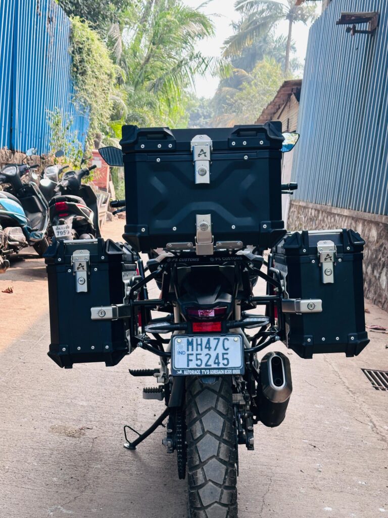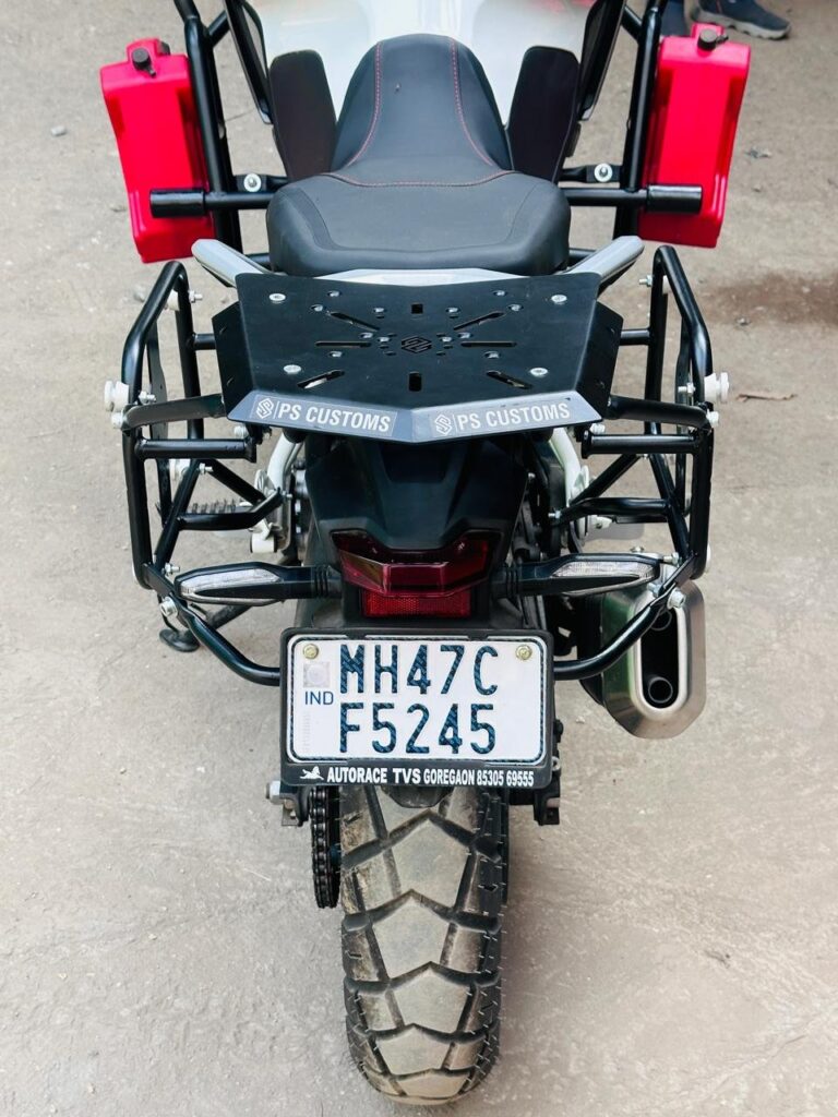 de your touring setup with the TVS Apache RTX 300 Pannier Stay with Top Rack (Without Boxes) by PS Customs International, designed to provide a complete and stable luggage mounting solution for long rides and adventure travel.